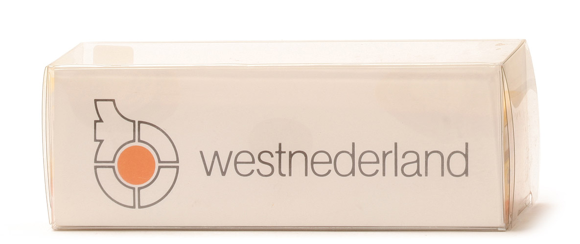 Frontdruck mit Westnederland-Logo. Heck mit "Westnederland" und Logo bedruckt. Das Dach ist bei diesem Modelltyp immer nur aufgesteckt. Umsteckungen möglich! Beigepacker Spritzling in orangegelb. Gegenüber dem Serienmodell abweichender Farbton - glasiges helleres Gelb.