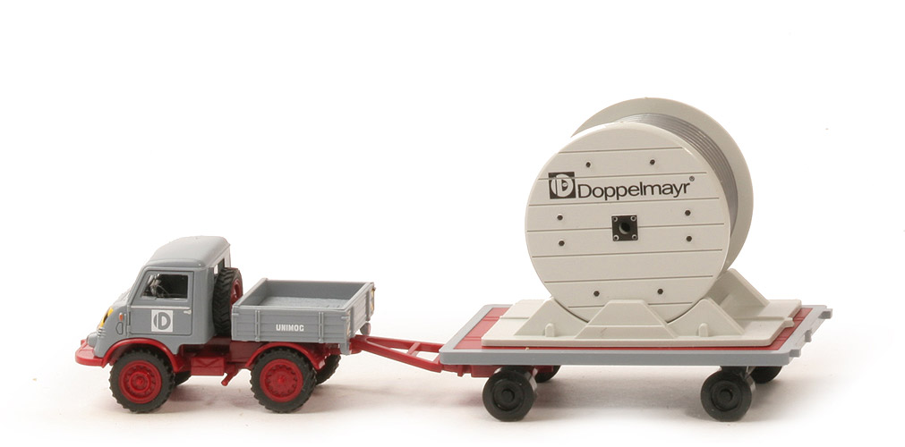 Unimog U 402 Tiefladezug mit Kabeltrommel (2020)