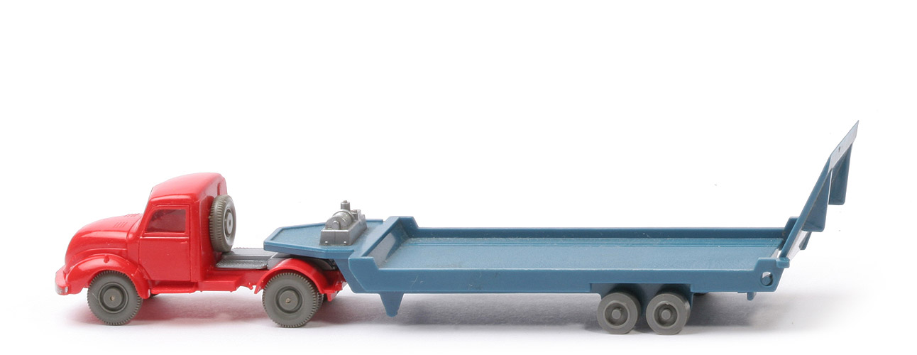 Rote Zugmaschine mit offenen Achshalterungen für diesen Tieflader nicht im GK. Hier Zugmaschine mit Blinkern - plausibel mit passendem Auflieger mit "49".