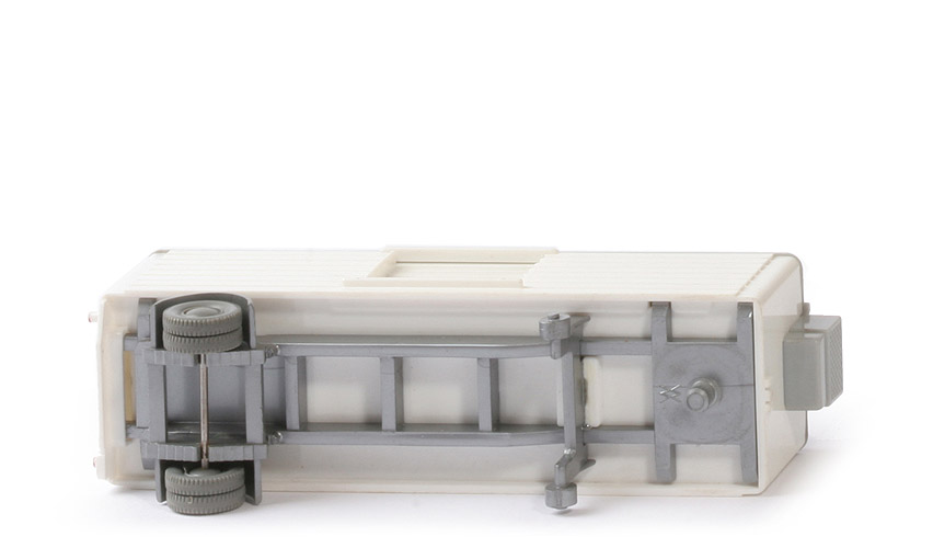 Auflieger in Vorserien-Version. Noch ohne Bodenprägung, Dach und Kühlaggregat silbergrau, Radlauf hinten silbern. |