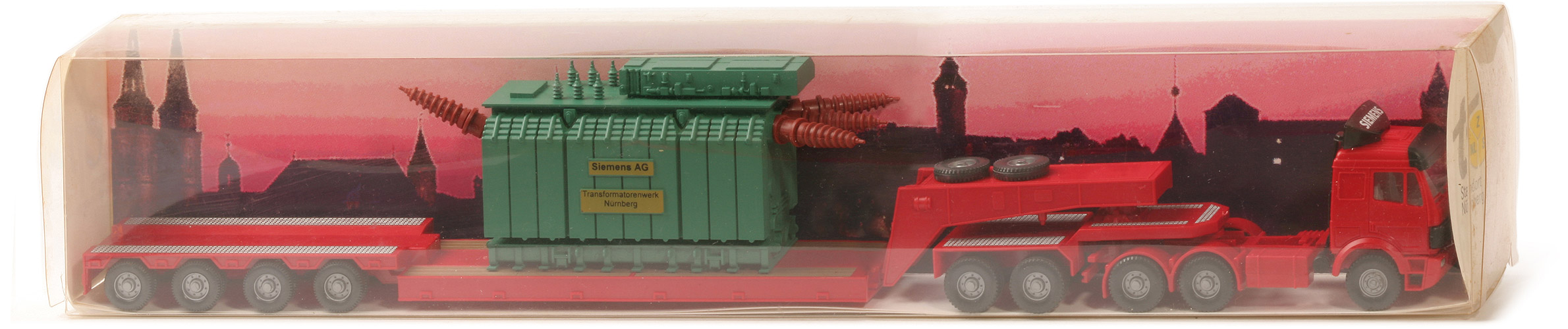 Siemens (60) wie im GK benannt: "auch mit Trafo als Ladung bekannt (nicht von WIKING)". Gigantisch großes Modell - so lang wie ein DIN A4-Blatt. Spoiler mit "Siemens" in weiß.