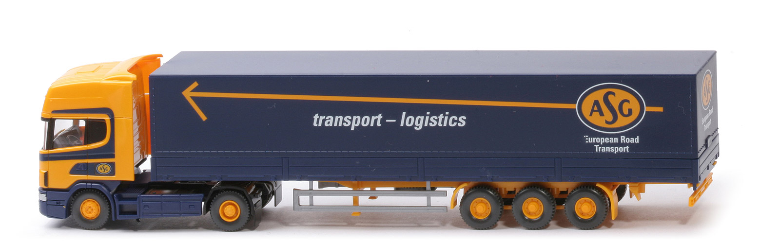 Scania     Scania 144     Pritschen-Sattelzug     ASG - Werbemodell ASG in Podestschachtel    ?