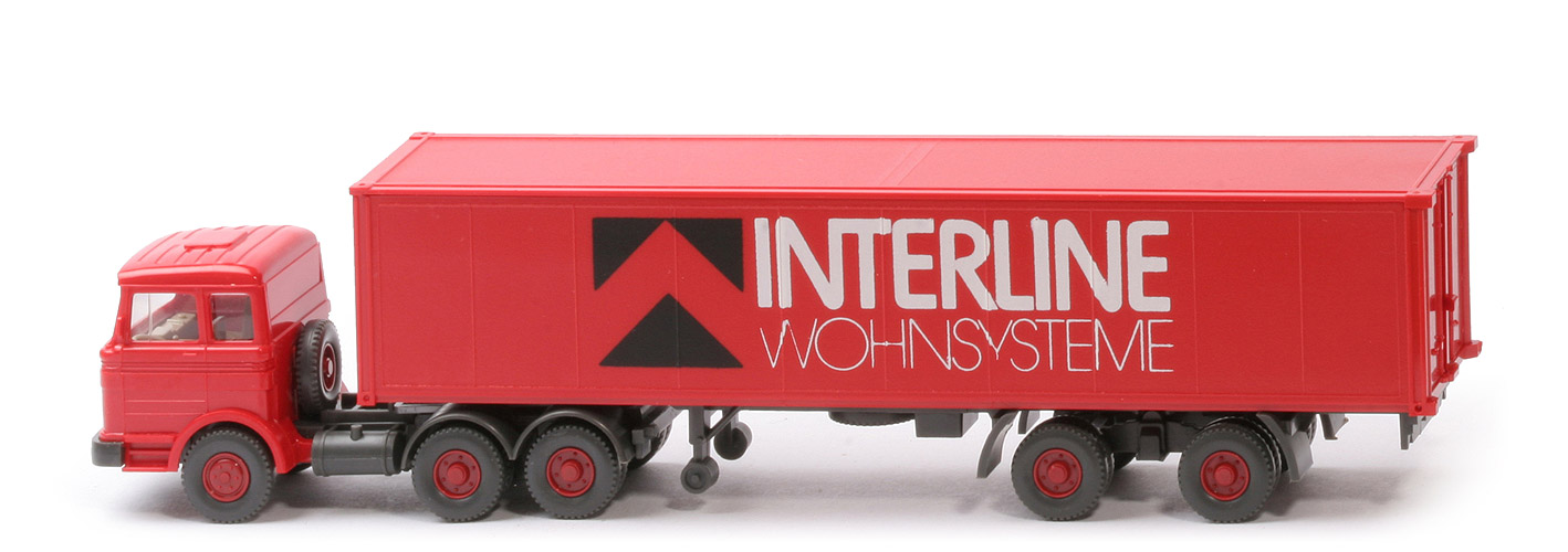 Gelistet im GK als Koffersattelzug. Es handelt sich hierbei um den verklebten Glattwandcontainer ohne seitliche Türen. Die rote 2223-Kabine gibt es nur beim Schieder. Modelle mit Spiegeln und ohne Scheibenwischer sind zeitlich zwischen 1978 und 1981 einzuordnen. |