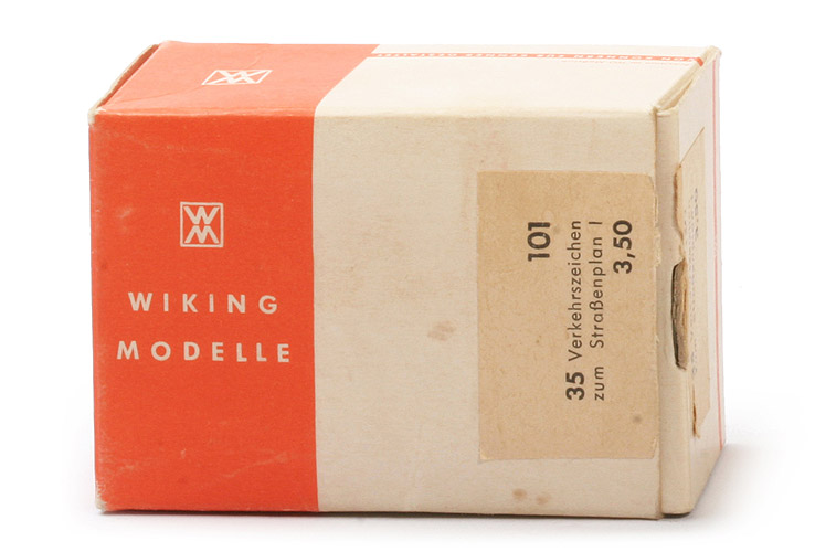 Dieses Verkehrsschilder-Set beinhaltet die Schilder, die auf den WIKING-Straßenplan I aufgedruckt sind. Ein solches Set gab es von 1957 bis 1970. Anfangs gab es Schilder mit flachem Sockel in anderem Karton. Unten Bilder vom letzten Verkaufsskarton ("großer Karton" - 1960 bis 1970).