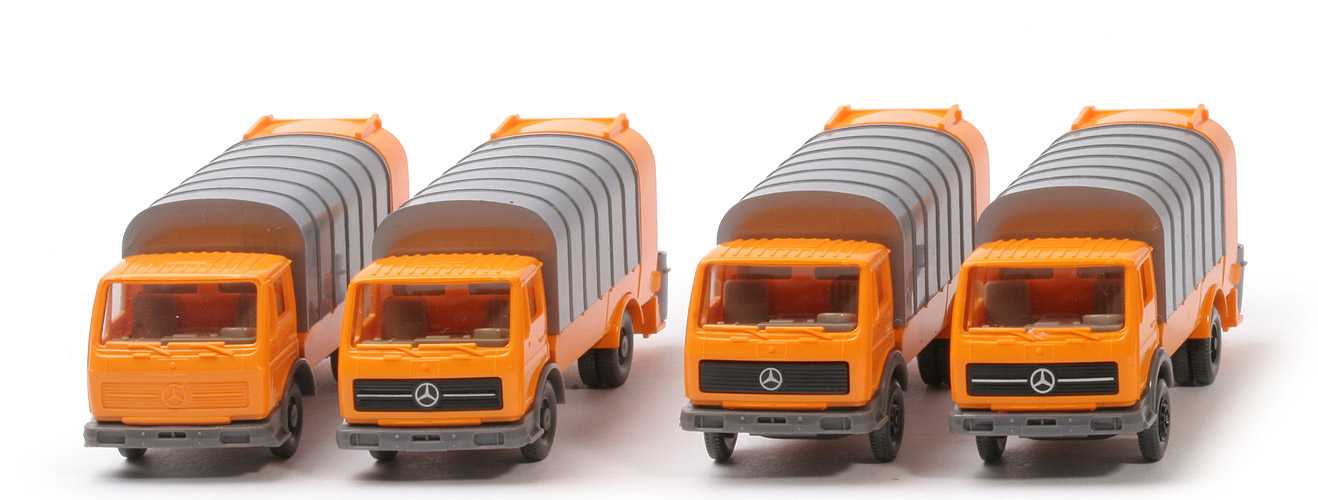 Alles sehr selten, aber ohne Prestige. In der Serie gab es den MB 1017 Müllwagen nur mit BSR-Beschriftung in einer Werbemodell-Packung. Dies sind alles seltene Werbemodelle für Mercedes, wie im GK notiert.