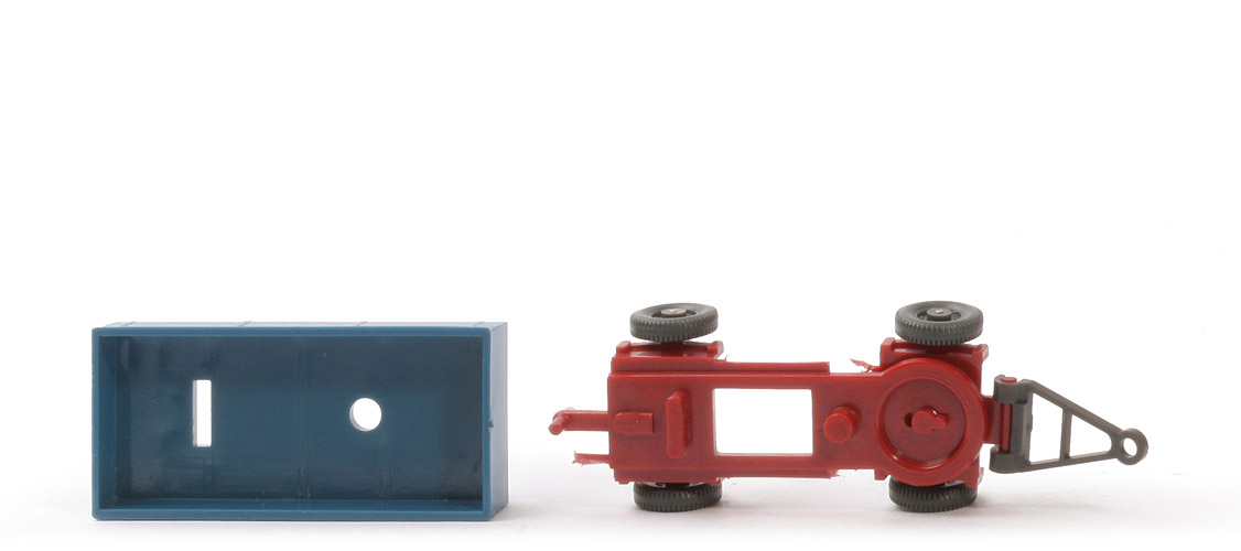 Normalerweise ist die Pritsche auf dem Chassis kräftig verklebt. Ebenso ist die Pritscheneinlage verklebt. Beim vorliegenden Modell sind alle Komponenten nur gesteckt.
