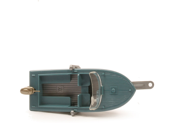 Motorboot auf Anhänger - diamantblau, Motor goldmetallic, flache Scheibe - 95/3j