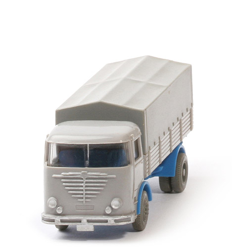 Büssing LKW     Büssing LU 7     Pritschen-LKW     dunkelsilbergrau / himmelblau, o. Fahrer, CH offen    ?