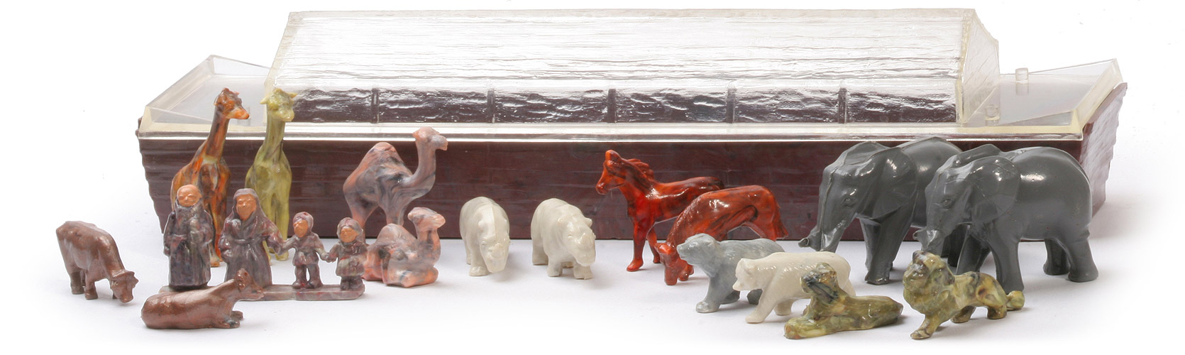 Ein Bild unten zeigt das Noah-Ensemble komplett mit Figurengruppe und Tieren. Die Arche mit der kompletten Gruppe ist im GK unter separaten Nummer 880/1 gelistet.