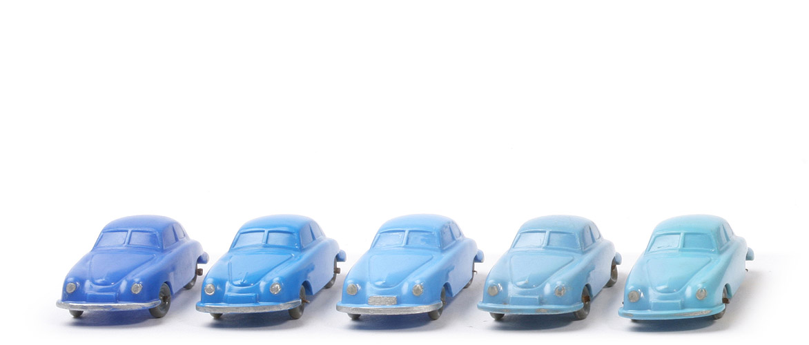 Im GK nicht gelistet. Bild unten: Drahtachser-Porschies in Blautönen. |