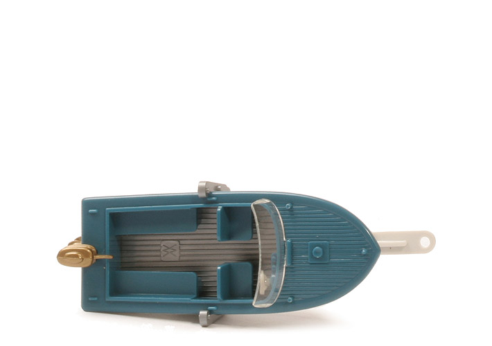 Motorboot auf Anhänger - azurblau, Motor goldmetallic, flache Scheibe - 95/2d