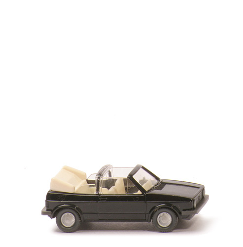 Farbe | schwarz | Außenspiegel Fahrerseite | mit | Verglasung | klar | Dreieckfenster | mit | Überrollbügel | geschwärzt | Inneneinrichtung | cremeweiß | Lenkrad | integriert | Verdeck | cremeweiß | Chassisfarbe | basaltgrau | Bodenprägung | VW Golf Wiking Berlin-W | Achshalterung | breit | Stoßstangen | umgreifend | Grill | 4 waagerechte Leisten (gerillt) | Bemalung vorne | Scheinwerfer silbern | Bemalung hinten | ohne | Räder | anthrazit, Riffelkappe gesilbert |