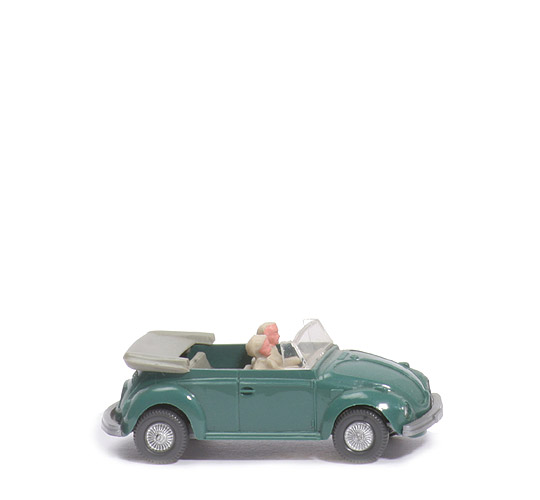 Farbe Karosserie | patinagrün | Frontscheibe | klarer Kunststoff | Figuren | Typ 2, ca. hellelfenbein | Lenkrad | separat eingesetzt, 2-speichig | Sitze | zementgrau | Verdeck | zementgrau | Bemalung Scheinwerfer | silber | Bemalung Rückleuchten | ohne | Chassis | Typ 8, silbern | Bodenprägung | VW 1300 WIKING Germany | Stoßstangen | glatt - ohne Hörner | Achshalterungen | offen | Räder | Riffelkappe, gesilbert |