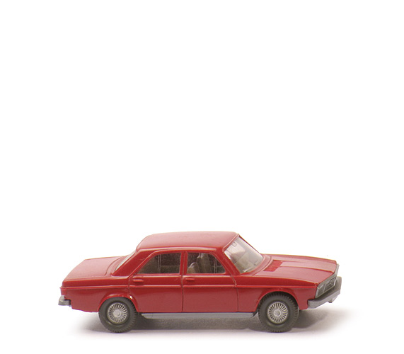 Farbe Karosserie | rubinrot | Grill | Teil des Chassis | Verglasung | klar | Inneneinrichtung | ca. graubeige | Lenkrad | integriert | Chassis | silbern | Bodenprägung | Audi 100 - WIKING Germany | Bemalung | völlig ohne | Räder | Standard-Riffelkappe | Bemalung Radkappen | silbern |