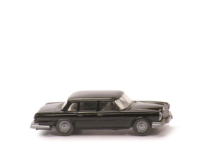 Farbe | schwarz | Grill | silbern eingesetzt | Scheinwerfer | klar transparent eingesetzt | Inneneinrichtung | ca. lichtgrau | Lenkrad | separat eingesetzt, ca. hellelfenbein | Bemalung Rückleuchten | ohne | Chassisfarbe | silbern | Bodenprägung | Mercedes 600/156/Wiking Germany | Räder | 9 mm | Radkappen | silbern eingesetzt |
