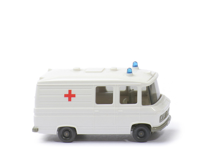 Farbe Karosserie | weiß | Fanfaren | ohne | Blaulichter | 2, oben gerundet | Scheibenwischer, Spiegel | ohne | Verglasung | getönt | Inneneinrichtung | ohne Lenkrad, 2 Sitze | Armaturenbrett | ohne | Inneneinrichtung Transportraum | ohne | Farbe Chassis und Grill | zementgrau | Platte zur Achshalterung | zementgrau | Bodenprägung | Wiking Germany 27 | Bemalung | ohne | Beschriftung | Rotkreuz | Räder | anthrazit, 8 mm |
