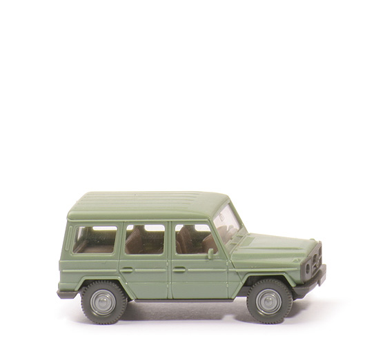 Farbe Karosserie | hellresedagrün | Hecktür | 2-teilig | Reserverad | ohne | Grill | Teil des Chassis | Verglasung | klar | Dach | separat aufgesetzt | Inneneinrichtung | ca. graubeige | Chassis Farbe | basaltgrau | Bodenprägung | WIKING - Berlin-W | Zughaken | ohne | Räder | 9 mm | Radkappen | silbern |