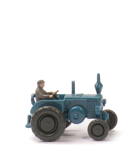 | Aufbau | azurblau | | Unterbau-Teil m. Scheinwerfern | azurblau | | Ansaugrohr | integriert lang | | Auspuffrohr | azurblau | | Scheinwerfer | gesilbert | | Fahrersitz-Teil m. Lenkstange | azurblau | | Lenkrad | anthrazit, 4 Speichen | | Fahrer | ca. staubgrau | | Bodenprägung | WIKING Germany | | Zughaken | stark, oben gerade | | Zughakenattrappe | ohne | | Dach | ohne | | Räder Farbe | anthrazit | | Räder vorne | einteilig, 5 Loch | | Räder hinten | einteilig, 8 Loch |