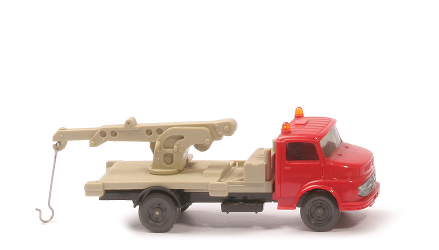 Farbe Kabine | rot | Typ Kabine | Typ 4c | Dach | mit Lüfter und Warnlichtern (hinten auf Kabine) | Eckfenster | ohne | Kotflügel | Teil der Kabine | Blinker | seitlich auf dem Kotflügel | Grill | silbern eingesetzt | Inneneinrichtung | ohne | Verglasung | getönt | Chassis Art | ohne Zughaken und ohne Rückleuchten | Kotflügel hinten | stark | Aufbauabstützung | Querstege | Reserverad | ohne | Bodenprägungen | Wiking, Germany | Chassisfarbe | schwarz | Aufbau | hellgelbgrau | Kran | hellgelbgrau | Ausleger Variante | 6 Bohrungen | Räder | 11mm, 6 Loch, Profil fein |