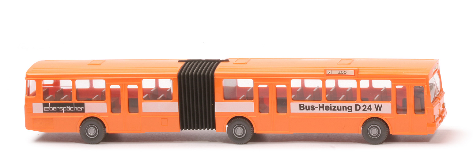 Farbe Karosserie | rotorange | Bemalung vorne | Scheinwerfer silbern | Verglasung | klar | Gelenkbereich | schwarzer Weichkunststoff | Sitze | braungelb | Fahrer | ca. basaltgrau | Fahrer Typ | Standard-Busfahrer | Bemalung Fahrer | Gesicht | Lenkrad | anthrazit | Bemalung Heck | ohne | Chassis Farbe | anthrazit | Chassis Typ | mit Trapez | Bodenprägung | WIKING, Berlin-W | Räder | 12mm, Profil grob | Radkappen | silbern eingesetzt | Zielangaben | 5 | ZOO | Beschriftung | Eberspächer Bus-Heizung D 24 W | Beschriftung Art | Druck schwarz/weiß |