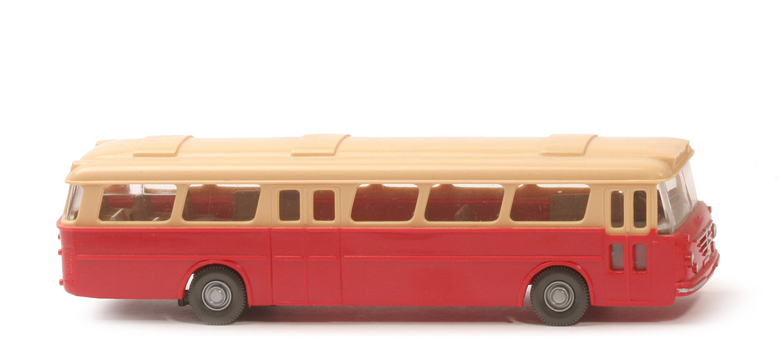 Karosserie oben | hellbeige | Karosserie unten | rot | Verglasung | klar | Inneneinrichtung | ca. hellelfenbein | Lenkrad | anthrazit | Fahrer | anthrazit | Bemalung Fahrer | Gesicht und Hände | Schlepploch | ohne | Achshalterung vorne | separat eingesetzt, antrazit | Bodenprägung | WIKING Germany, 72 s | Unterflurmotor | anthrazit | Bemalung Hauptscheinwerfer | silbern | Bemalung Nebenscheinwerfer | silbern | Bemalung Büssing-Spinne | silbern | Bemalung Stoßstange vorne | silbern | Bemalung Rücklichter | ohne | Bemalung Rückstrahler | silbern | Typ | 12mm, Profil fein | Radkappen | silbern |