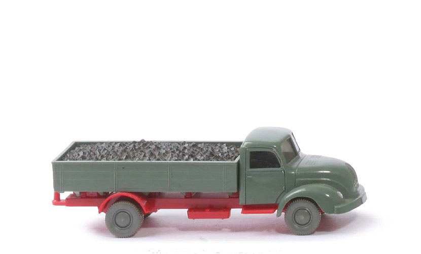 | Farbe Kabine | dunkelresedagrün | | Version Kabine | Typ 3 | | Stoßstange | abgeschrägt | | Kabinenboden | mit Schlitz | | Blinker | ohne | | Verglasung | getönt | | Bemalung | nur Scheinwerfer | | Chassis Farbe | rot | | Chassis Art | Version 3a | | Achshalterungen | offen | | Chassis Bodenprägung | WM (ohne Kreis) und Made in .. | | Zughaken | integriert | | Rückleuchten am Chassis | mit | | Pritsche Art | Normpritsche | | Pritschenseiten | waagerechte Gravuren | | Rückleuchten | bündig an Rückwand | | Kennzeichen | einteilig | | Pritsche Farbe | dunkelresedagrün | | Pritscheneinlage | ohne | | Bemalung Rückleuchten | mit | | Bemalung Kennzeichen | ohne | | Räder | 10mm, neuere Ausführung |