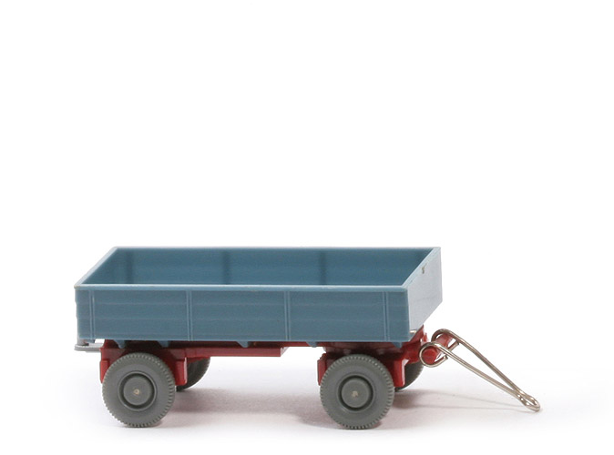 | Pritsche | Pritsche Farbe | mattgraublau | Pritschenseiten | mit Struktur | Pritscheneinlage | ohne | Kennzeichen hinten | einteilig | | Chassis | Chassis Variante | Typ 4 | Chassis Farbe | weinrot | Achshalterungen | offen | Drehschemel | eingesteckt | Bodenprägung Drehschemel | ohne | Bodenprägung Chassis | Germany | Zughaken | silbern, angeklebt | | weitere Details | Deichsel | Draht | Bemalung Rückleuchten | ohne | Bemalung Kennzeichen | ohne | Räder | 11 mm Glattwand |