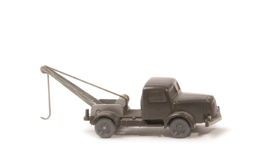 Achsen | Rollachser | Farbe Kabine | dunkelbasaltgrau | Farbe Chassis | dunkelbasaltgrau | Bemalung | Scheinwerfer, Stoßstange | Chassis | Version 1a | Achshalterungen | geschlossen | Bodenprägung | WM (ohne Kreis) | Reserverad | hinter Kabine | Kranaufbau | silbern | Kranausleger | silbern | Haken und Zugseil | einteilig Draht | Räder | ohne Profil basaltgrau |