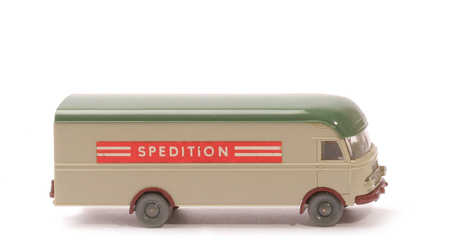 Aufbau Farbe | hellgelbgrau | Blinker vorne | ohne | Verglasung | klar | Inneneinrichtung | silbern | Fahrer | ohne | Kotflügel | Teil des Chassis | Rückleuchten | groß | Dach Farbe | diamantgrün | Dach Art | glänzend, ohne Positionsleuchten | Türen | diamantgrün, mit Lasche | Türen Art | Typ 2: hoch, mit Rand, mit Lasche | Chassis Art | Typ 3 | Chassis Farbe | rotbraun | Bodenprägung Motorblock | WM | Bodenprägung hinten | WIKING 50 Germany | Achshalterung vorne | geschlossen | Achshalterung hinten | offen | Fläche unter hinterem Kardan | geschlossen | Fläche hinter Hinterachse | geschlossen | Tank | ohne | Beschriftung | Spedition | Beschriftung Art | Papieraufkleber, Druck weiß auf rot | Räder | 10mm hellgrau |