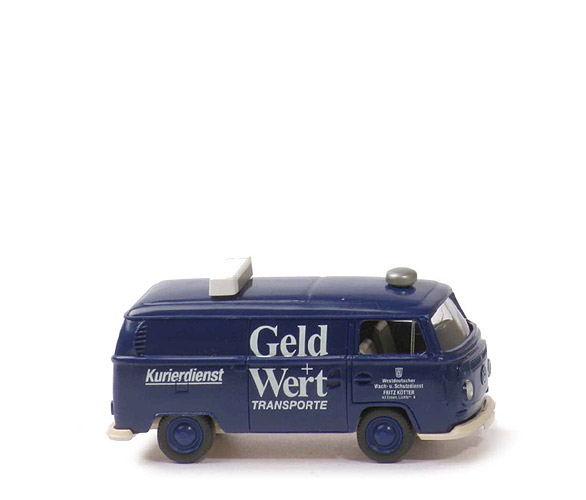 Karosserie | dunkelultramarin | Türgriffe | erhaben | Verglasung | klar | Lenkrad | schwarz | Inneneinrichtung | ca.silbergrau | Bemalung Scheinwerfer | silbern | Bemalung Rückleuchten | rot | Beschriftung | Geld und Wert .... (s. Foto) | Beschriftung Art | Druck weiß | Chassisfarbe | weiß | Bodenprägung | Wiking Germany (neues Logo) | Räder Typ | 8 mm, Nabe Aufbaufarbe, eingesetzt |