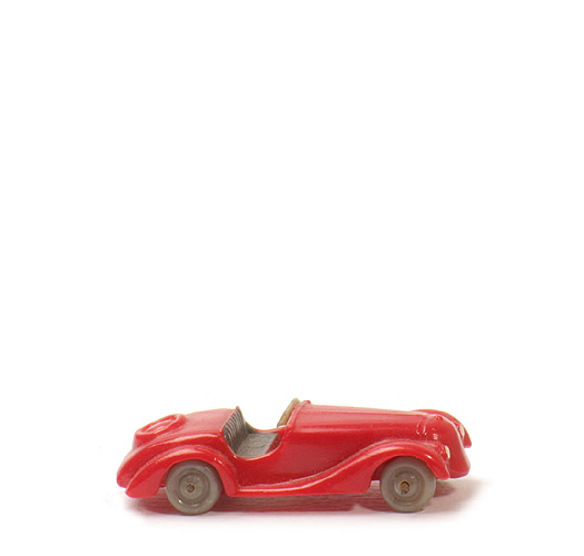 Achsen | Drahtachser | Farbe Karosserie | rot | Kühlergrill | glatt | Lenkrad | separat eingeklebt | Farbe Lenkrad | glasiges grau | Sitze | Lack grau | Sitzfläche | glatt | Bodenprägung | WM (ohne Kreis), Made in Germany | Bemalung Scheinwerfer | weiß | Bemalung Kennzeichen hinten | weiß | Räder Typ | Nabe flach | Räder Farbe | glasiges grau |
