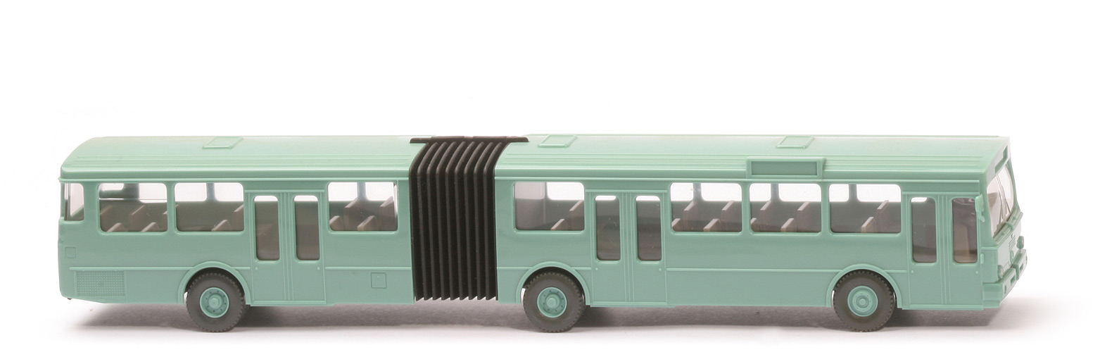 | Farbe Karosserie | türkis | | Bemalung vorne | Scheinwerfer silbern | | Verglasung | klar | | Gelenkbereich | schwarzer Weichkunststoff | | Sitze | ca. graubeige | | Fahrer | ca. basaltgrau | | Fahrer Typ | Standard-Busfahrer | | Bemalung Fahrer | Gesicht | | Lenkrad | anthrazit | | Bemalung Heck | ohne | | Chassis Farbe | anthrazit | | Chassis Typ | mit Trapez | | Bodenprägung | WIKING, Berlin-W | | Räder | 12mm, Profil grob, 10-Loch-Felgen | | Felgen | türkis | | Zielangaben | ohne | | Beschriftung | beiliegender Beschriftungsbogen Württembergische | | Beschriftung Art | bedruckte Klarsichtfolie |