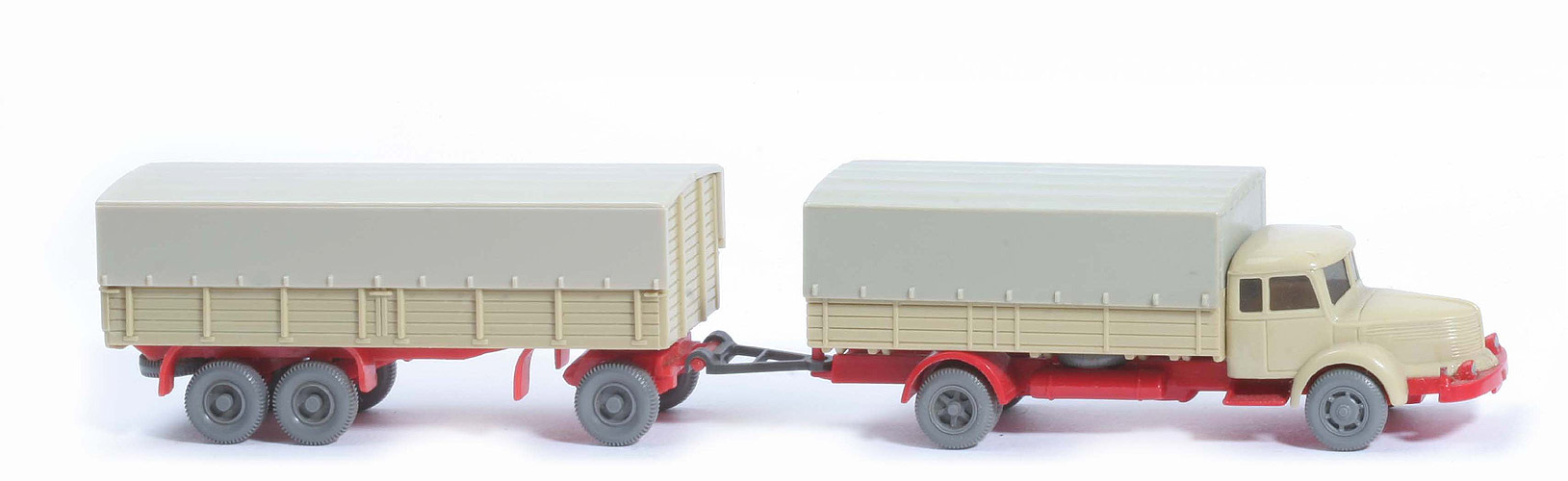 Kabine Farbe | grünbeige | Blinker | ohne | Bemalung Scheinwerfer | silbern | Bemalung Peilstangen | Spitze silbern | Bemalung Kennzeichen | unbemalt | Chassis Farbe | rot | Chassis Typ | 2b | Typ Peilstangen | 2,4 mm lang | Achshalterungen | offen | Bodenprägung | WM ohne Kreis | Markierungspunkt unter Motor | mit | Trittbretter unten | glatt | vor Verteilergetriebe | geschlossen | Aufpuffrohr mittig | unsauber graviert | Reserveradhalterung | ohne Stifte | hinter Hinterachskardan | geschlossen | Quertraverse hinten | ohne | Reserverad | mittig unter Pritsche | Farbe Pritsche | grünbeige | Bemalung Kennzeichen | ohne | Bemalung der einen Rückleuchte | rot | Plane | hinten geschlossen | Farbe Plane | ca. hellgelbgrau | Räder | Trilex mit Profil |