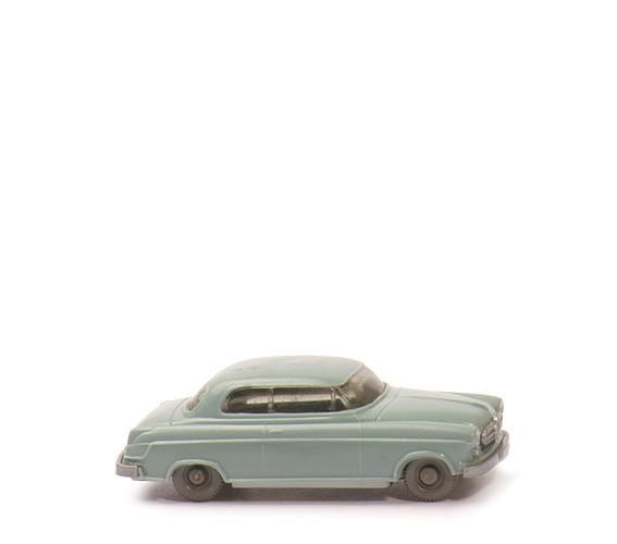 Farbe | grünblau | A- und B-Säulen | Teil der Verglasung | Grill | silbern eingesetzt | Verglasung | getönt | Inneneinrichtung | ohne | Chassisfarbe | silbern | Bodenprägung | WM | Zughaken | ohne | Bemalung Scheinwerfer | silber | Bemalung Rückleuchten | rot | Bemalung Kennzeichen hinten | silbern | Räder Farbe | ca. basaltgrau | Räder Typ | mit Profil, 6,8 mm |