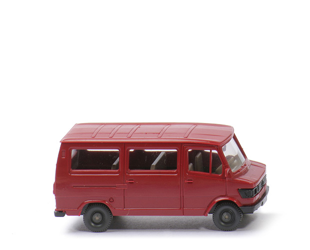 | Karosserie | hellbraunrot | | Spiegel, Scheibenwischer | mit | | Inneneinrichtung | mit Lenkrad, ca. graubeige | | Schiebetür | mit | | Chassis und Grill | schwarz | | Bodenprägung | Wiking Berlin - W, 280 - 282 | | Bemalung | ohne | | Beschriftung | ohne | | Räder | 8 mm, Nabe flach | | Räder Farbe | anthrazit |