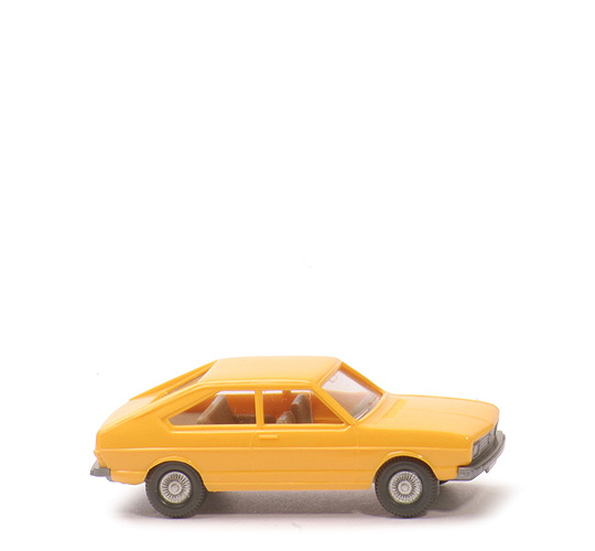 | Farbe | gelb | | Verglasung | klar | | Kühlergrill | Teil des Chassis | | Inneneinrichtung | ca. graubeige | | Lenkrad | integriert | | Bemalung Rückleuchten | ohne | | Chassis | silbern | | Bodenprägung | VW Passat, Wiking Berlin-W | | Räder | Riffelrappe | | Felgen | silbern bemalt |