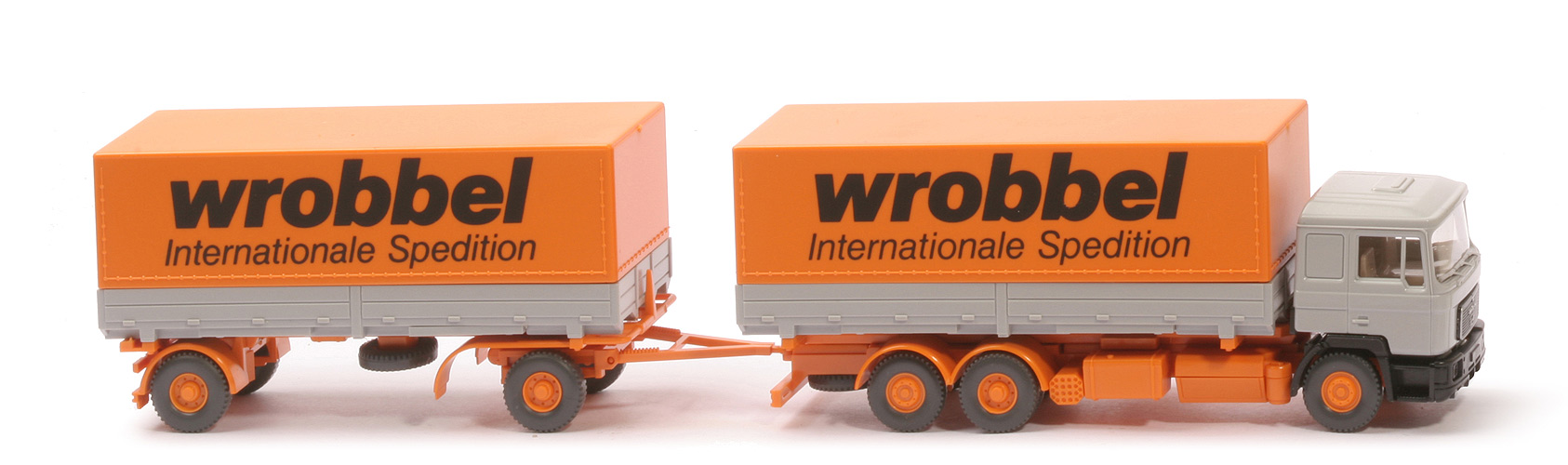 Für 1989 extrem filigranes WIKING-Modell mit sehr grazilen funktionalen Klappstützen und wunderbar skelettiertem Anhänger-Chassis |