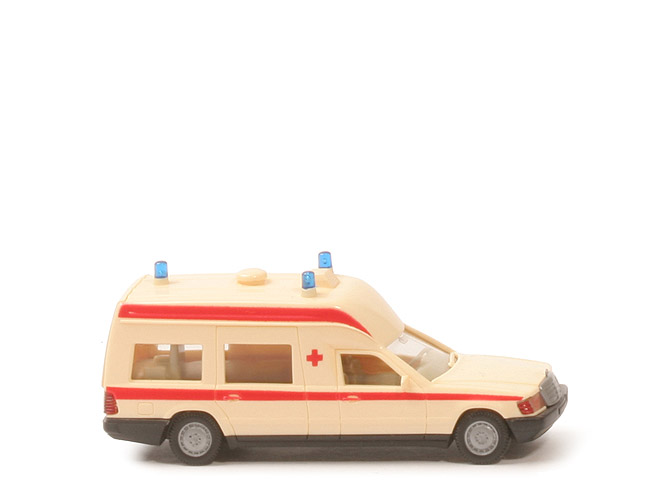Farbe Karosserie | helles creme | Außenspiegel | beidseits | Scheibenwischer | Teil der Karosserie | Scheinwerfer | transparent | Blinker vorne | rot-transparent | Blinker hinten | rot-transparent | Grill | silbern eingesetzt | Verglasung | klar | Innenspiegel | Teil der Verglasung | Inneneinrichtung | ca. grünlichbeige | Lenkrad | integriert | Blaulicht | 3 auf Dach verklebt | Chassis u. Schürze Farbe | schwarz | Bodenprägung | WIKING-Logo (neu)/Binz 2001/Berlin-W/Germany | Beschriftung stirnseitig | ohne | Beschriftung seitlich | Rotkreuz, Streifen in rot | Art Beschriftung | Druck | Räder Typ | mit Alu-Felgen | Räder Farbe | schwarz | Felgen | silbern eingesetzt |