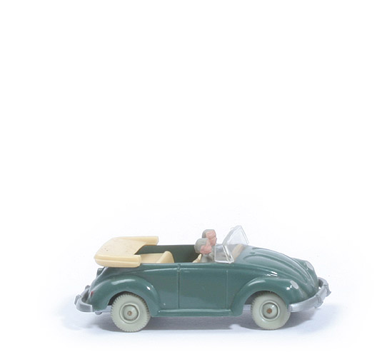Farbe Karosserie | graugrün | Frontscheibe | klarer Kunststoff | Figuren | Typ 2, ca. kieselgrau | Lenkrad | separat eingesetzt | Sitze | hellbeige | Verdeck | hellbeige | Bemalung Scheinwerfer | silber | Bemalung Rückleuchten | rot | Chassis | Typ 3, silbern | Bodenprägung | WM - Made in Germany | Stoßstangen | mit Hörnern | Steg zwischen Sitzreihen | mit | Achshalterungen | offen | Bodenprägung | WM, Made in Germany | Auspuffrohre | zwei | Motorblock | glatt | Räder | ca. lichtgrau |