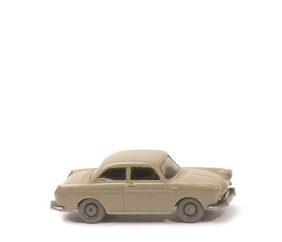 Farbe | olivgrau | Haube | gerundet | Blinker vorne | Pickelblinker | Verglasung | leicht getönt | Inneneinrichtung | ohne | Bemalung Scheinwerfer | silber | Bemalung Rückleuchten | rot | Chassisfarbe | silbern | Chassis Typ | Version 2: mit Hörnern | Bodenprägung | MiG, VW 1600, WM | Haltestreben Stoßstange | je zwei | Stoßstangenhörnchen | mit | Räder Typ | 7 mm, Nabe glatt | Räder Farbe | ca. staubgrau |