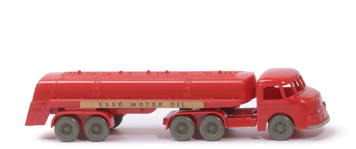 | Zugmaschine | Verglasung | ohne | Kabine Farbe | orangerot | Chassis Farbe | orangerot | Kabinenrückwand | ohne Haltenasen | Bemalung | Scheinwerfer, Stoßstange | Bodenprägung Chassis | WM im Kreis | vordere Auswerfermarkierung | 2 mm | hintere Auswerfermarkierung | 2 Stück | Achshalterungen | geschlossen | Sattelpfanne | integriert | Reserverad | ohne | Rückleuchten | ohne | Räder vorn | Version 6 - betongrau | Räder hinten | Version 7 - betongrau | | Auflieger | Farbe Korpus, Unterteil | orangerot | Farbe Achseinheit | orangerot | Königsbolzen | dünn, integriert | Bodenprägung Unterseite | WM im Kreis | Bodenprägung Achseinheit | ohne | Typ Achshalterung | gerade, geschlossen | Reserverad | ohne | Rückleuchten | ohne | Beschriftung Seite | Papieraufkleber | Länge / Art | kurzer Aufkleber | Beschriftung Heck | Papieraufkleber | Rand | 1 mm breit (schmal) | Bemalung Nummernschild | silber | Räder | Version 7 - betongrau |