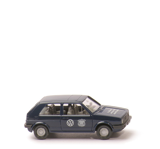 Farbe | stahlblau | Außenspiegel Fahrerseite | mit | Verglasung | klar | Dreieckfenster | mit | Strebe hinteres Seitenfenster | ohne | Inneneinrichtung | ca. lichtgrau | Lenkrad | integriert | Chassisfarbe | basaltgrau | Bodenprägung | VW Golf Wiking Berlin-W | Bemalung vorne | Scheinwerfer silbern | Bemalung hinten | ohne | Bedruckung Motorhaube | 2 millions vehiculos ... | Bedruckung Seiten | VW Emblem, ... | Räder | anthrazit, Riffelkappe gesilbert |