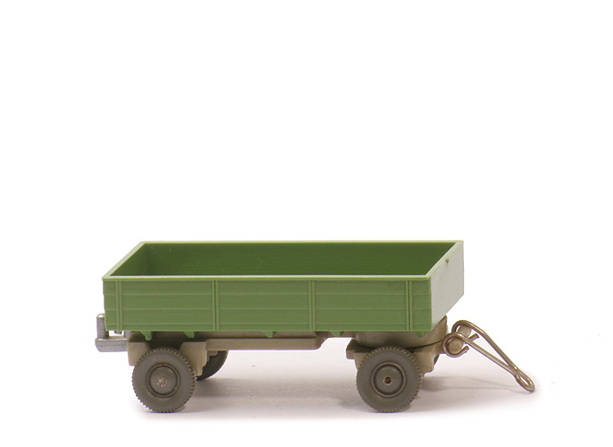 Im GK ist die Pritschenfarbe als gelbgrün notiert. Eher maigrün. Das Chassis in hellgelbgrau ist in den Katalogen nicht für diesen Anhänger gelistet. |