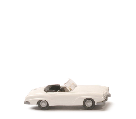 Farbe Karosserie | weiß | Kennzeichen hinten | Teil des Chassis | Windschutzscheibe | separat eingeklebt | Bedruckung Scheinwerfer | ohne | Bedruckung Blinker vorn | ohne | Persenning (Verdeckabdeckung) | schwarz | Sitze | schwarz | Lenkrad Art | durchbrochen, 3-speichig | Lenkrad Farbe | creme | Chassis Farbe | silbern | Achshalterungen | längs versetzt offen | Bodenprägung | neues WIKING-Logo, WM | Bedruckung Rückleuchten | ohne | Räder Typ | 8 mm, Riffellappe | Felgen | gesilbert |