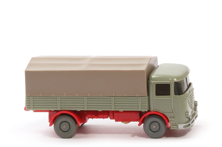 Aufbau | Typ 2, hellgraugrün | Blinker | ohne | Verglasung Art | Typ 3: oben geschlossen | Verglasung Tönung | stark getönt | Fahrer | ohne | Sitze | rot | Bemalung Hauptscheinwerfer | silbern | Bemalung Zusatzscheinwerfer | silbern | Bemalung Büssing-Spinne | ohne | Bemalung Stoßstange | silbern | Bemalung Kennzeichen vorne | silbern | Bemalung Überblick | Version 3 | Chassis | Version 3, rot | Chassis Gestaltung hinten | geschlossen | Bodenprägung | WM | Achshalterung vorne | separates Bauteil mit Lenkgetriebe | Achshalterung hinten | offen | Bemalung Rückleuchten | ohne | Bemalung Kennzeichen hinten | ohne | Verdeck | braunelfenbein | Räder | 11 mm, glatt, ca. basaltgrau |
