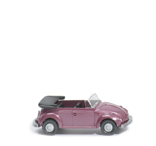 Farbe Karosserie | hellviolett met. | Frontscheibe | klarer Kunststoff | Figuren | ohne | Lenkrad | integriert | Sitze | schwarz | Verdeck | schwarz | Bemalung Scheinwerfer | silber | Bemalung Rückleuchten | ohne | Chassis | Typ 9, silbern | Bodenprägung | VW 1303 WIKING Berlin-W | Stoßstangen | glatt - ohne Hörner | Achshalterungen | offen | Räder | Riffelkappe, gesilbert |