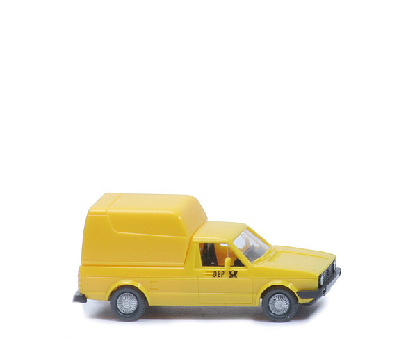 Farbe | gelb | Außenspiegel | beidseits | Verglasung | klar | Dreieckfenster | mit | Inneneinrichtung | ca. schwarz | Lenkrad | integriert | Chassisfarbe | schwarz | Bodenprägung | Wiking VW Caddy Berlin-W Germany | Stoßstangen | umgreifend | Grill | 4 waagerechte Leisten (gerillt) | Kasten | gelb | Verglasung Kasten | klar | Bemalung vorne | Scheinwerfer silbern | Bemalung hinten | ohne | Beschriftung Tür | DPB, stilisiertes Posthorn | Beschriftung Art | Druck | Räder | anthrazit, Riffelkappe gesilbert |