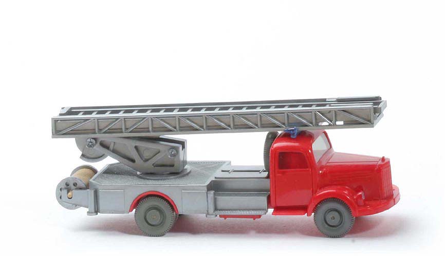 Farbe Kabine | rot | Version Kabine | mit Schlitz hinter Nrn-Schild | Blinker | ohne | Verglasung | getönt | Dach | glatt mit Blaulichtleiste | Bemalung | nur Scheinwerfer | Bemalung Stoßstange | ohne | Reserverad | hinter Kabine | Version Chassis | Version 3a | Chassis Farbe | rot | Achshalterungen | offen | Bodenprägung | WM und Made in Germany | Aufbau Farbe | silbern | Aufbau Variante | Trittfläche Struktur | Führungsstege Aufbau | ohne | Drehkranz | Version 2, silber | Leiter | dreiteilig, silbern | Schlauchhaspel Typ | alt | Schlauchhaspel Seiten | silber | Schlauch | beige | Räder | 11 mm glatt |