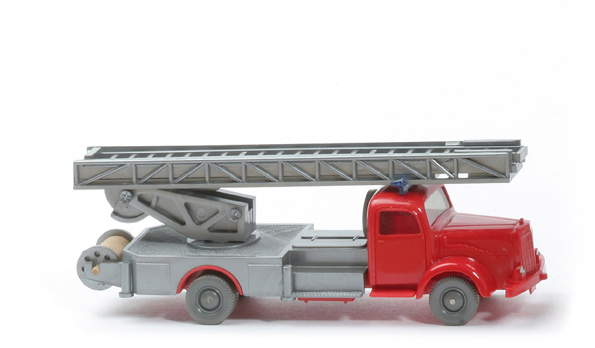 Farbe Kabine | rot | Version Kabine | mit Schlitz hinter Nrn-Schild | Blinker | ohne | Verglasung | getönt | Dach | glatt mit Blaulichtleiste | Bemalung | nur Scheinwerfer | Bemalung Stoßstange | ohne | Reserverad | hinter Kabine | Version Chassis | Version 3a | Chassis Farbe | rot | Achshalterungen | offen | Bodenprägung | WM und Made in Germany | Aufbau Farbe | rot | Aufbau Variante | Trittfläche Struktur | Führungsstege Aufbau | ohne | Drehkranz | Version 2, silber | Leiter | dreiteilig, silbern | Schlauchhaspel Typ | alt | Schlauchhaspel Seiten | silber | Schlauch | hellbeige | Räder | 10mm, neuere Ausführung |