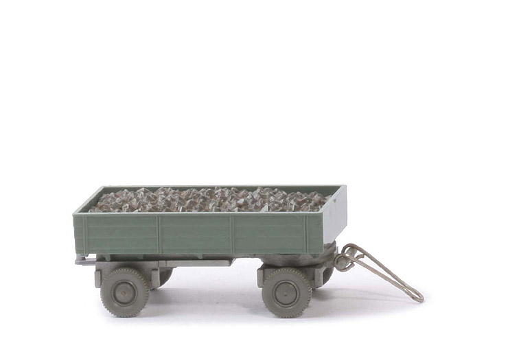 | Pritsche | Pritsche Farbe | dunkelresedagrün | Pritschenseiten | mit Struktur | Pritscheneinlage | ohne | Kennzeichen hinten | einteilig | | Chassis | Chassis Variante | Typ 2 | Chassis Farbe | silbern | Achshalterungen | offen | Drehschemel | eingesteckt | Bodenprägung Drehschemel | WM | Bodenprägung Chassis | ohne | Zughaken | silbern, Typ LKW, unter Chassis geklebt | | weitere Details | Deichsel | Metall | Kohlenladung | anthrazit | Bemalung Rückleuchten | ohne | Bemalung Kennzeichen | ohne | Räder | 10 mm, staubgrau, neuere Ausführung |